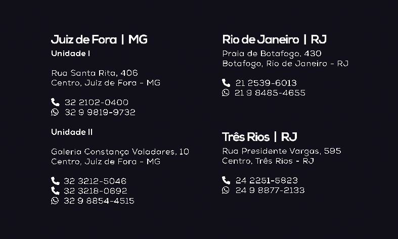 Endereço: Rua Santa Rita, 406, Centro, Juiz de Fora - MG, CEP:36010-071