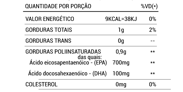 Óleo de Peixe. Cápsula: Gelatina, Água Purificada e Umectante.